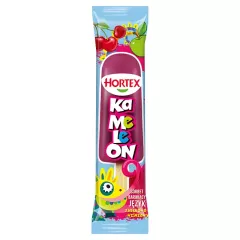 Dane produktowe Hortex Owocowe Lody wodne arbuz 70 ml Składniki: woda, cukier, sok arbuzowy z zagęszczonego soku arbuzowego 12,0 %, syrop glukozowy, zagęszczony sok jabłkowy, koncentrat z czarnej marchwi, emulgator: mono- i diglicerydy kwasów tłuszczowych, stabilizatory: mączka...