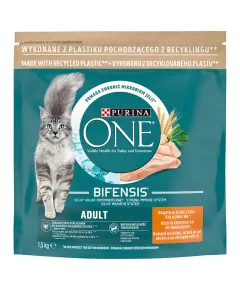 Dane produktowe PURINA ONE Bifensis Adult Karma dla dorosłych kotów bogata w kurczaka 1,5 kg Pełnoporcjowa karma dla dorosłych kotów. Widoczne zdrowie dziś i jutro PURINA ONE Adult jest zaprojektowana dla kotów od 1. roku życia wzwyż Zrównoważony mikrobiom jest niezbędny dla dobrego zdrowia...