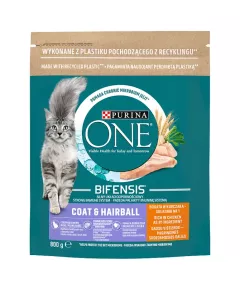 Dane produktowe PURINA ONE Bifensis Coat & Hairball Karma dla kotów bogata w kurczaka 800 g Pełnoporcjowa karma dla dorosłych kotów Widoczne zdrowie dziś i jutro PURINA ONE Coat & Hairbal jest zaprojektowana aby utrzymać zdrową skórę i piękną sierść Twojego kota. Zrównoważony mikrobiom jest...