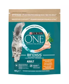Purina ONE Adult Karma dla kotów bogata w kurczaka z pełnymi ziarnami 450 g Pełnoporcjowa karma dla dorosłych kotów.PURINA ONE Adult zawiera recepturę stworzoną dla kotów powyżej 1 roku życiaPURINA ONE Bifensis to unikalna formuła żywieniowa zawierająca korzystne bakterie funkcjonalne, które,...