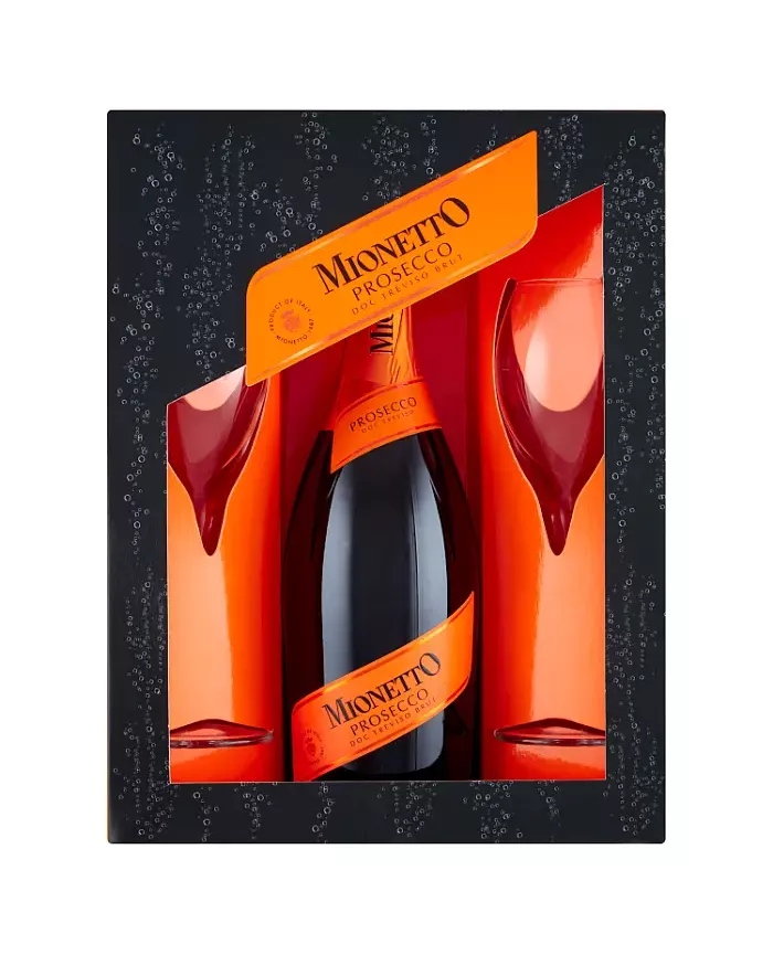 Mionetto Prosecco DOC Treviso Brut Wino wytrawne musujące włoskie 750 ml + 2 kieliszki