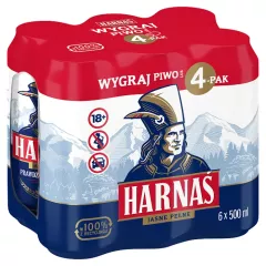 Dane produktowe Harnaś Piwo jasne pełne 6 x 500 ml Składniki: woda, słód JĘCZMIENNY, JĘCZMIEŃ (J), cukier (C), chmiel JC lub CJ - w zależności od kolejności użytych składników, patrz nadruk obok daty przydatności Dodatki Marka Harnaś Dodatkowe informacje Wygraj 4-pak lub...