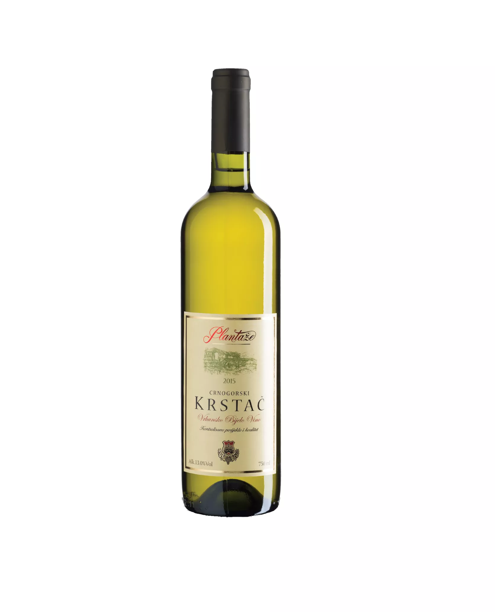 Szczep Krstac. Pojemność 0,75 l. Pochodzenie Czarnogóra. Wino białe półwytrawne.