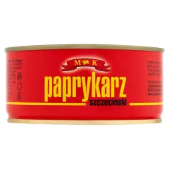 Dane produktowe MK Paprykarz szczeciński 300 g Składniki: mięso rozdrobnione Z ŁOSOSIA 40% (Z ŁOSOSIA hodowlanego norweskiego, lub szkockiego Salmo salar), woda, ryż, koncentrat pomidorowy, KASZA MANNA (ZAWIERA GLUTEN), cebula suszona, sól spożywcza, BŁONNIK SOJOWY, ocet spirytusowy,...