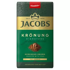 Dane produktowe Jacobs Krönung Kawa mielona 500 g Jacobs Krönung to kawa mielona o bogatym smaku i prawdziwie królewskim aromacie. Wszystko za sprawą wyjątkowych ziaren, zebranych na najlepszych, światowych plantacjach kawy. Starannie zebrane i wyselekcjonowane ziarna gwarantują doskonałe...