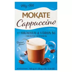 Dane produktowe Mokate Cappuccino z magnezem 160 g (8 x 20 g) Pozwól sobie na chwilę przyjemności z Twoim ulubionym cappuccino! Aksamitna konsystencja i cudowny aromat, uwieńczone kremową warstwą kuszącej pianki. Tak smakuje prawdziwa przyjemność! Magnez przyczynia się do zmniejszenia...