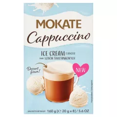 Dane produktowe Mokate Cappuccino z belgijską czekoladą 160 g (8 x 20 g) Pozwól sobie na chwilę przyjemności z Twoim ulubionym cappuccino! Aksamitna konsystencja i cudowny aromat, uwieńczone kremową warstwą kuszącej pianki. Tak smakuje prawdziwa przyjemność! Składniki: mleczna baza...
