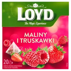 Dane produktowe Loyd Herbatka owocowa aromatyzowana o smaku maliny i truskawki 40 g (20 x 2 g) Długi sznurek z zawieszką umożliwia wygodne zaparzanie herbatki także w wysokich naczyniach. Przestrzenna piramidka zapewnia lepszą cyrkulację wody, by uwolnić pełnię aromatu. Material do produkcji...