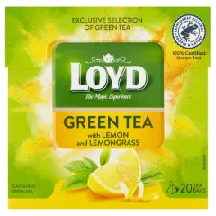 Dane produktowe Loyd Herbata zielona aromatyzowana o smaku cytryny z trawą cytrynową 30 g (20 x 1,5 g) Składniki: herbata zielona* 76 %, trawa cytrynowa 10 %, skórka cytryny 8 %, aromat, *100 % Rainforest Alliance Certified. Dowiedz się więcej na ra.org Dodatki Marka Loyd...