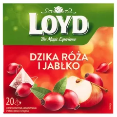 Dane produktowe Loyd Herbatka owocowa aromatyzowana o smaku jabłka z dziką różą 40 g (20 x 2 g) Długi sznurek z zawieszką umożliwia wygodne zaparzanie herbatki także w wysokich naczyniach. Przestrzenna piramidka zapewnia lepszą cyrkulację wody, by uwolnić pełnię aromatu. Material do produkcji...