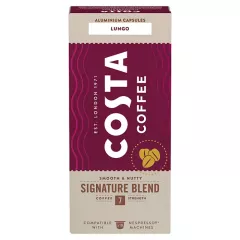Dane produktowe COSTA COFFEE Signature Blend Lungo Kawa w kapsułkach 57 g (10 x 5,7 g) Kapsułki kompatybilne z ekspresami Nespresso* W COSTA COFFEE znamy się na doskonałej kawie. Właśnie dlatego jej miłośnicy chętnie sięgają po naszą autorską mieszankę od 1971. Bracia Costa podjęli aż 112...