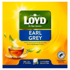 Dane produktowe Loyd Earl Grey Herbata czarna aromatyzowana 127,5 g (75 x 1,7 g) Składniki: mieszanka herbat czarnych*, aromat bergamotowy, *100 % Rainforest Alliance Certified Dodatki Zawiera: Zapachy Marka Loyd Dodatkowe informacje Przechowywanie Najlepiej spożyć...