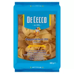 Dane produktowe De Cecco Makaron pappardelle 500 g Składniki: semolina - mąka z przemiału PSZENICY durum, woda Dodatki Marka De Cecco Dodatkowe informacje Przechowywanie Przechowywać z dala od źródeł ciepła, światła i wilgoci. Przechowywać w temperaturze otoczenia...