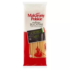 Dane produktowe Makarony Polskie Makaron bucatini z mąki z pszenicy durum 400 g Składniki: mąka z PSZENICY twardej (Triticum durum) Dodatki Marka Makarony Polskie Dodatkowe informacje Przechowywanie Najlepiej spożyć przed: data z tyłu opakowania. Przechowywać w...