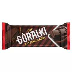Dane produktowe Góralki z czekoladą Ciemny wafelek z nadzieniem w polewie kakaowej 40 g Top Góralki od góry oblane Składniki: cukier, tłuszcze roślinne (palmowy, kokosowy), mąka PSZENNA, polewa kakaowa 15 % (cukier, tłuszcze roślinne: palmowy, Shea; kakao 17 % o obniżonej zawartości...