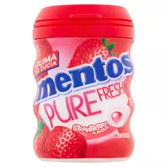 Dane produktowe Mentos Pure Fresh Strawberry Guma do żucia bez cukru 60 g (30 sztuk) Składniki: substancje słodzące (ksylitol, sorbitole, maltitole, mannitol, aspartam, acesulfam K), baza gumowa, skrobia, kwasy (kwas jabłkowy, kwas winowy, kwas cytrynowy), maltodekstryna,...