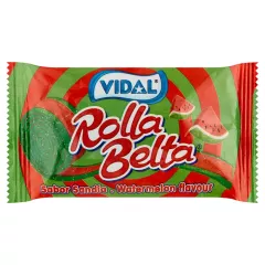 Dane produktowe Vidal Unicorn Rolls Kwaśne żelki smak truskawkowy 19 g Składniki: cukier, syrop glukozowo-fruktozowy, MĄKA PSZENNA (ZAWIERA GLUTEN), kwasy: kwas jabłkowy, kwas cytrynowy, dekstroza, tłuszcz palmowy, skrobia kukurydziana, aromaty, przeciwutleniacze: kwas askorbinowy,...