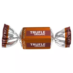 Dane produktowe Mieszko Trufle Oroginal Cukierki z rumem w czekoladzie 2,5 kg Składniki: cukier, czekolada (19 %) [cukier, miazga kakaowa, tłuszcz roślinny (palmowy, shea), tłuszcz kakaowy, tłuszcz MLECZNY, emulgatory: lecytyny (z SOI) i E 476; aromat], kakao o obniżonej zawartości...
