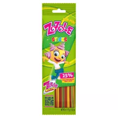 Dane produktowe Zozole Hello Żelo Sticks Żelki o smaku owocowym 75 g Składniki: cukier, sok jabłkowy z zagęszczonego soku jabłkowego (25 %), syrop glukozowy, mąka PSZENNA, tłuszcz roślinny (palmowy, shea), substancja utrzymująca wilgoć: glicerol, regulator kwasowości: kwas cytrynowy,...