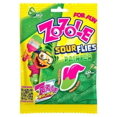 Dane produktowe Zozole Painter Kwaśne żelki barwiące język o malinowym smaku 75 g Składniki: syrop glukozowy, cukier, żelatyna, kwasy: kwas cytrynowy, kwas jabłkowy, substancja utrzymująca wilgoć: glicerol, substancja żelująca: pektyny, aromaty, barwnik: E133 Dodatki: Marka:...