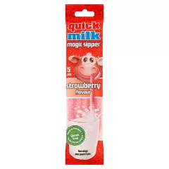Dane produktowe Quick Milk Magic Sipper Słomki smakowe do mleka o smaku truskawkowym 30 g (5 x 6 g) Składniki: cukier, syrop glukozowy, dekstroza, naturalny aromat truskawkowy, barwnik: karmina Dodatki Marka Quick Milk Dodatkowe informacje Przechowywanie...