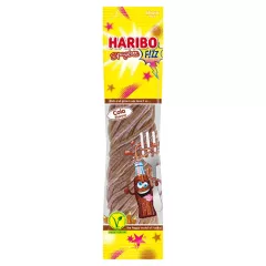 Dane produktowe Haribo Spaghetti Fizz Żelki owocowe o smaku cola 200 g Składniki: cukier, syrop glukozowy, skrobia kukurydziana, substancja utrzymująca wilgoć: sorbitole, mąka PSZENNA, kwas: kwas cytrynowy, kwas jabłkowy, regulator kwasowości: jabłczany sodu, aromat, syrop cukru...