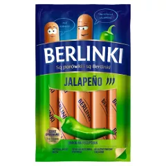 Dane produktowe Berlinki Kiełbasa jalapeño 250 g Smak Berlinek to zasługa unikalnej receptury. Wysoka jakość mięsa, sekretna mieszanka naturalnych przypraw, precyzyjny proces parzenia w kontrolowanej temperaturze oraz wędzenie dymem bukowym sprawiają, że Berlinki smakują wyśmienicie i mają...
