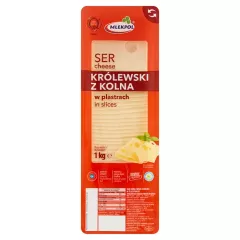 Dane produktowe Mlekpol Ser królewski z Kolna w plastrch 1 kg Składniki: MLEKO, sól, kultury bakterii mlekowych, stabilizator: chlorek wapnia Dodatki Marka Mlekpol Dodatkowe informacje Przechowywanie Przechowywać w temperaturze od 0 °C do +10 °C. Po otwarciu...