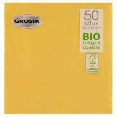 Dane produktowe Grosik Serwetki biodegradowalne żółte 33 x 33 cm 50 sztuk Składniki: Dodatki Marka Grosik Dodatkowe informacje Przechowywanie Przechowywać w temperaturze otoczenia Jednostka sprzedażowa Waga brutto - 182 Wysokość- 167 Szerokość- 167...