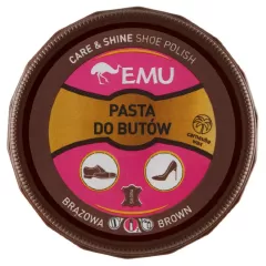 Dane produktowe Emu Pasta do butów brązowa 50 ml Brązowa pasta do butów na bazie wody Czyści, odżywia, chroni i nabłyszcza obuwie ze skóry naturalnej i ekologicznej. Formulacja na bazie wody nie wysusza obuwia. Składniki: Zawiera: woski, woski naturalne, pigmenty, wodę Dodatki...