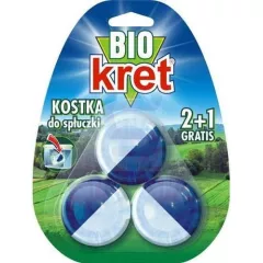Dane produktowe kret Bio kostka do spłuczki z aktywatorem enzymatycznym 150 g (3 x 50 g) BIO Kostka do spłuczki z aktywatorem enzymatycznym to innowacyjna formuła 2w1 łącząca aktywne składniki czyszczące, barwiące wodę i zapachowe. Kostka może być stosowana w toaletach połączonych z szambem...