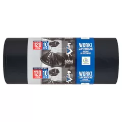 Dane produktowe Anna Zaradna Worki na śmieci 120 l 10 sztuk Worki wykonane z przetworzonych odpadów foliowych bez użycia surowców pierwotnych. Tylko surowce wtórne plus dodatki barwiące i zapachowe. 110 x 69 cm +/-5 %. Supermocnych worków na śmieci marki Anna Zaradna użyj do pakowania odpadów...