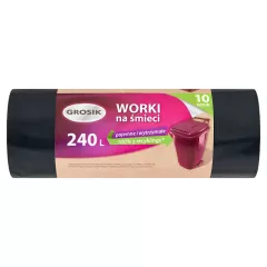 Dane produktowe Grosik Worki na śmieci 160 l 10 sztuk Składniki: Dodatki Marka Grosik Dodatkowe informacje Przechowywanie Przechowywać w temperaturze otoczenia Jednostka sprzedażowa Waga brutto - 740 Wysokość- 87 Szerokość- 238 Głębokość- 70...