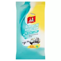 Dane produktowe Jan Niezbędny Ściereczki nasączane do luster i szkła 40 sztuk Ściereczki nasączane do szyb i luster Jan Niezbędny zawierają formułę, która doskonale usuwa brud nie pozostawiając żadnych smug ani włókien. Idealnie nadają się do czyszczenia luster oraz szyb (w drzwiach,...