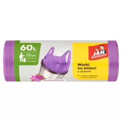 Dane produktowe Jan Niezbędny Worki łazienkowe z nadrukiem 15 l 26 sztuk Pasują do każdej łazienki - wykonane są z kremowej folii. Ich neutralny i dyskretny wygląd z łatwością wkomponuje się do wnętrza każdej łazienki. Wygodne przenoszenie i wiązanie - posiadają system wiązania typu Easy...
