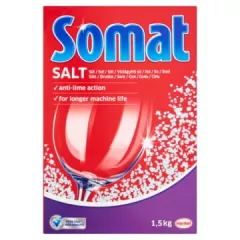 Dane produktowe Somat Duo Sól do zmywarek 1,5 kg Zbyt twarda woda może powodować osadzanie się kamienia na naczyniach oraz w zmywarce. Sól Somat zmiękcza wodę, a co za tym idzie chroni przed szkodliwym osadem zarówno w zmywarce, dyszach, jak i rurach. - Chroni przed osadzaniem się kamienia....