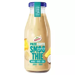 Dane produktowe Hortex Przetarte Smoothie ananas kokos chia jabłko banan 250 ml Smoothie - jabłko, banan, ananas, kokos z dodatkiem nasion chia Wstrząśnij zanim otworzysz Przed otwarciem wstrząsnąć. Przeciery mogą powodować rozwarstwienie produktu. Składniki: sok jabłkowy (33 %) z...