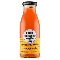Dane produktowe Bracia Sadownicy Sok tłoczone jabłko z marchewką 250 ml Obudź smak soku i wstrząśnij butelką Najlepiej smakuje schłodzony w temperaturze 2-8 stopni C. Składniki: soki tłoczone (z jabłek 75%, z marchewek 25%), witamina C Dodatki: Marka: Bracia Sadownicy...