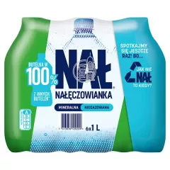 Dane produktowe Nałęczowianka Naturalna woda mineralna niegazowana 6 x 1 l Nałęczowianka Naturalna woda mineralna niegazowana. Poręczna butelka, zapewni Ci nawodnienie na większą część dnia. Teraz jest wykonana w 100% z innych butelek (100% plastik PET z recyclingu). Nałęczowianka w trosce o...