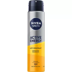 Dane produktowe Nivea MEN Active Energy Antyperspirant w sprayu 250ml Antyperspirant NIVEA MEN Active Energy zapewnia niezawodną ochronę przed wilgocią pod pachami i nieprzyjemnym zapachem potu. Unikalna formuła z kompleksem cynku i substancjami aktywnymi, które chronią w nawet najbardziej...