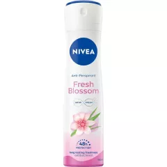 Dane produktowe Nivea Fresh Blossom Antyperspirant DLA Kobiet Spray 150 ml Antyperspirant NIVEA Fresh Blossom w sprayu zachwyca swoim wyjątkowym zapachem oraz zapewnia skuteczną ochronę przed poceniem. Odświeżający i delikatny zapach zapach, łączy w sobie kwiatowe nuty z orzeźwiającą trawą...