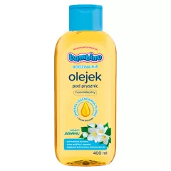 Dane produktowe Bambino Rodzina Olejek pod prysznic o zapachu jaśminu 400 ml Łagodny olejek pod prysznic i do kąpieli w wannie do codziennego stosowania. Zawiera 57% natualnych olejków roślinnych, legendarną oliwkę Bambino i olejek rycynowy. Utrzymuje prawidłowe nawilżenie skóry i zapobiega...