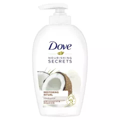 Dane produktowe Dove Restoring Ritual Pielęgnujące mydło w płynie z pompką 250 ml Składniki: Aqua, Sodium Laureth Sulfate, Glycerin, Cocamidopropyl Betaine, Sodium Chloride, Sodium Benzoate, Parfum, Citric Acid, Glycol Distearate, Lauric Acid, Hydrogenated Starch Hydrolysate, Brassica...