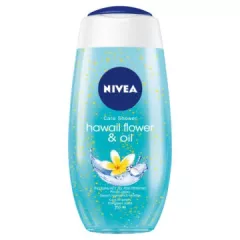 Dane produktowe Nivea Hawaii flower & Oil Żel pod prysznic 500 ml Pozwól, by odświeżający żel z perełkami olejku otoczył Twoją skórę miękką pielęgnującą pianą, podczas gdy zapach hawajskich kwiatów pobudzi Twoje zmysły. Drobinki zawarte w żelu delikatnie oczyszczają i masują skórę...