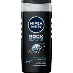 Dane produktowe Nivea MEN Rock Salt ŻEL POD Prysznic DO Ciała, Twarzy I Włosów 250 ml Żel pod prysznic dla mężczyzn NIVEA MEN Rock Salts to unikalna, oczyszczająca formuła z dodatkiem soli kamiennej! Produkt głęboko oczyszcza i odświeża męską skórę, nie wysuszając jej. Męski żel pod...