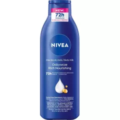 Dane produktowe Nivea Odżywcze mleczko do ciała 250 ml Odżywcze mleczko do ciała NIVEA wzbogacone jest o GŁĘBOKO NAWILŻAJĄCE SERUM, naturalny olejek migdałowy oraz witaminą E. Formuła kosmetyku intensywnie odżywia skórę przez 48h i odczuwalnie redukuje jej szorstkość - nawet w przypadku...