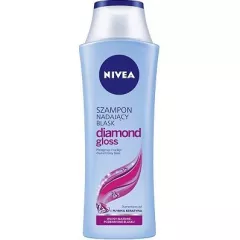 Dane produktowe Nivea Łagodny Szampon DO Włosów Diamond Gloss 250 ml Łagodny szampon pielęgnujący NIVEA Diamond Gloss z diamentowym pyłem. Ulepszone formuły sprawiają, że szampon idealnie dostosowuje się do naturalnego poziomu pH Twojej skóry. Delikatnie oczyszcza skórę głowy i intensywnie...