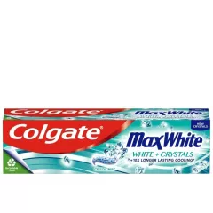 Dane produktowe Colgate Max White White Crystals Pasta do zębów 75ml 10x DŁUŻSZE UCZUCIE ŚWIEŻOŚCI w porównaniu ze zwykłą pastą z fluorem. Przywraca naturalną biel zębów. Składniki: Sorbitol, Aqua, Hydrated Silica, Glycerin, PEG-12, Sodium Lauryl Sulfate, Aroma, Xanthan Gum, Tetrasodium...