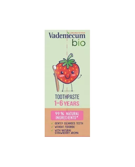 VADEMECUM BIO PASTA DO ZĘBÓW DLA DZIECI 1-6 LAT Z NATURALNYM AROMATEM TRUSKAWKI 50 ML