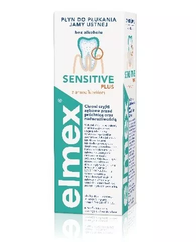 Płyn do płukania jamy ustnej elmex® Sensitive z aminofluorkiem dodatkowa ochrona przed nadwrazliwością i próchnicą szyjek zębowych. Produkt, który uzupełnia codzienną pielęgnacje zębów, dbając o skuteczną ochronę i pomoc w nadwrażliwości zębów. Stosowany wraz z pastą elmex® Sensitive zapewnia 3 razy wyższa ochrona w porównaniu do szczotkowania z użyciem wyłącznie pasty do zębów* co potwierdzono w badaniach naukowych. Płyn elmex jako jeden z niewielu płynów do płukania jamy ustnej w swoim składnie nie zawiera: - 0% alkoholu - 0% sztucznych barwników Główne korzyści wynikające ze stosowania płynu do płukania jamy ustnej elmex Sensitive: - Łatwy w użyciu. - Łagodna ochrona i przyjemny smak. - Uzupełnienie codziennego szczotkowania. - 3x większa ochrona, w porównaniu do szczotkowania z użyciem wyłącznie pasty do zębów*. Aminofluorek tworzy ochronną warstwę na odsłoniętych szyjkach zębowych, chroniąc je przed działaniem bodźców zewnętrznych oraz próchnicą. Zapytaj swojego stomatologa. Wybierz pewność. Wybierz elmex. *Zostało klinicznie potwierdzone, że dodatkowo stosując do pasty emlex® Sensitive płyn do płukania jamy ustnej zapewniamy 3 razy wyższą ochronę zębów przed próchnicą.